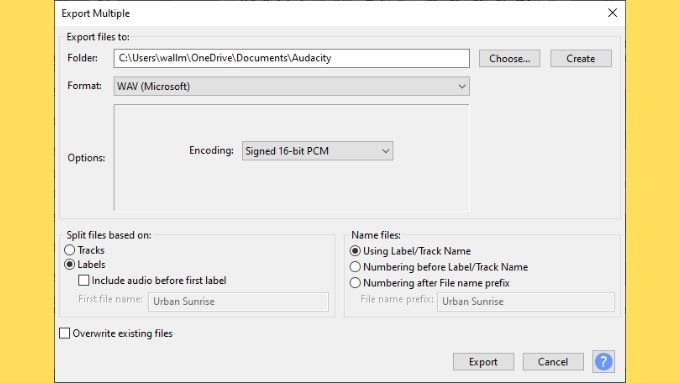 Now each labeled section will be saved as a separate file. You’ll be prompted to add metadata for each one in sequence, simply select OK (not “Save”) when done with each track’s details.