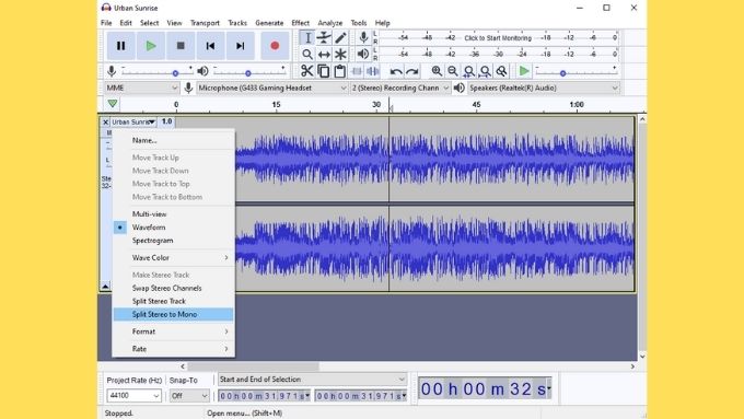 This option isn’t one you’ll find in the main menu structure of Audacity, instead you need to choose it from the track dropdown menu: