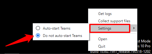 Hover your cursor on Settings and choose Do not auto-start Teams.