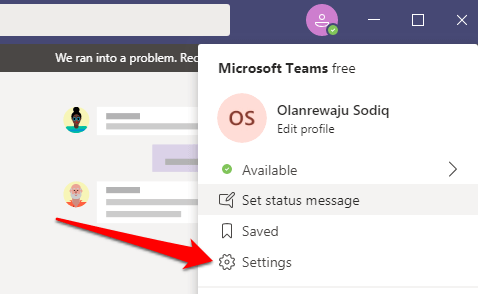 The easiest way to stop Microsoft Teams from automatically launching itself is from the app’s Settings menu. Open Microsoft Teams, click the profile icon at the top-right corner, and select Settings.