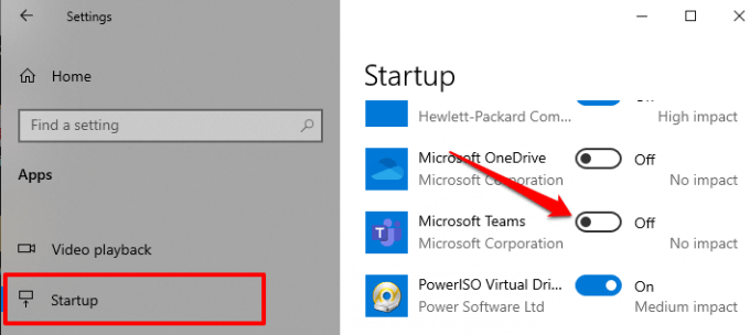 Windows has a section in the Settings menu dedicated to the management of startup apps. Open Windows Settings and navigate to Apps > Startup. Scroll through the applications in the Startup Apps section and toggle off Microsoft Teams.