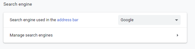In the settings menu,** scroll down to the Search engine** section and click on Manage search engines.