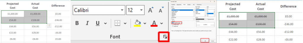 - You should now see a line through the text in your selected cells.