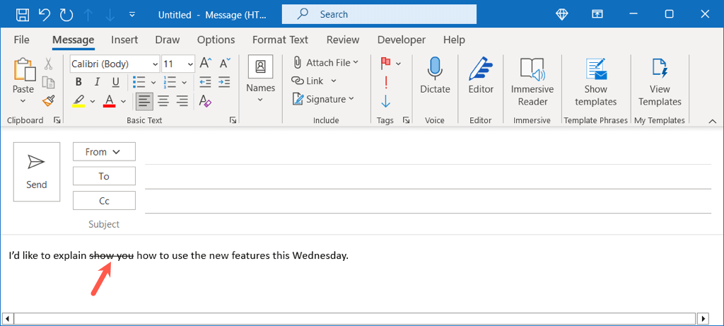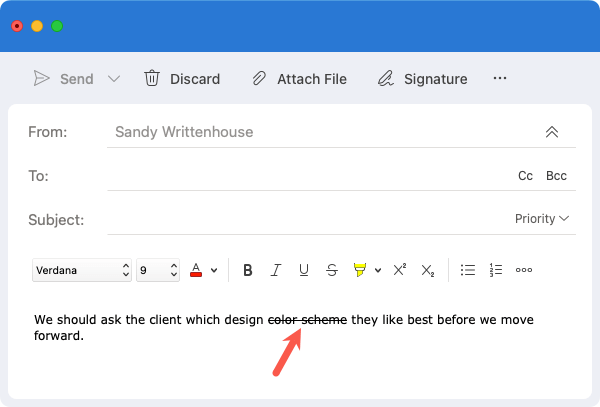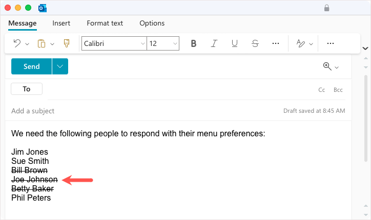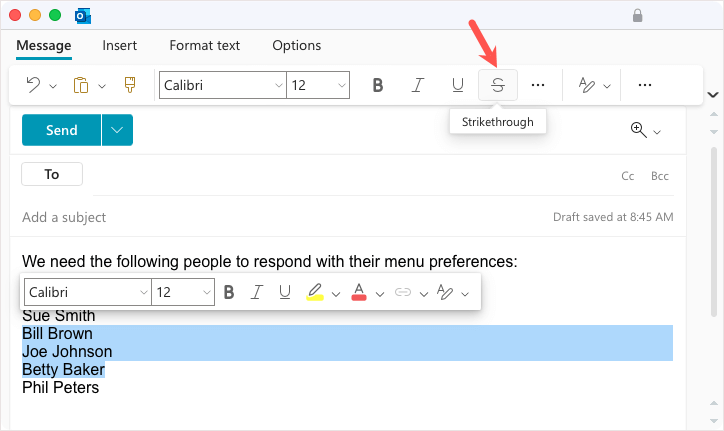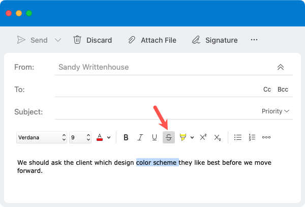 On Mac, you have a couple of ways to apply strikethrough in Outlook.