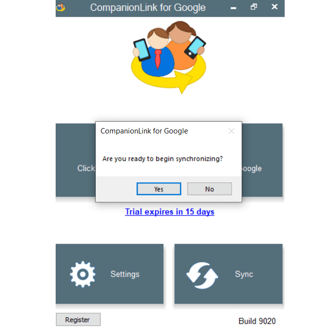 - Grant Google the permission to let CompanionLink read its data by clicking Allow and then OK. The pop-up will ask you if you want to synchronize. Click Yes.