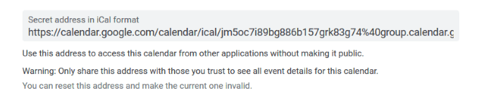 - Look for Secret address in iCal format in the Integrate calendar section and copy the URL.