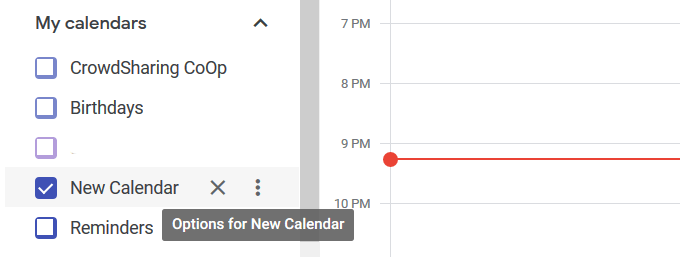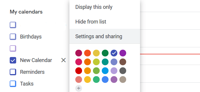 - Click on the three dots next to the name of the calendar and select the option “Settings and sharing.”