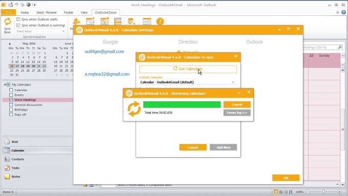 Outlook4Gmail is another tool to sync your Google Calendars and contacts with Outlook. The free version allows contact syncing and supports basic filter settings.