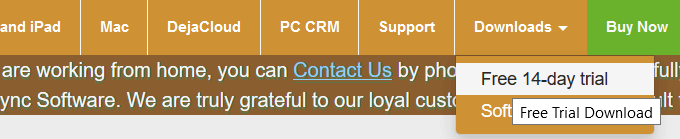 Start by going to companionlink.com, click on **Downloads, **and select **14-day free trial **from the top of the home page. You don’t have to provide any payment information for the trial.