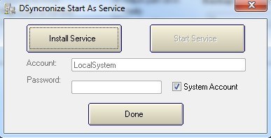 Once you do that, the Start Service button will become clickable. Click on that and don’t worry about Account, Password, etc. Just make sure System Account is checked. Click Done and you should see the program now says it’s running as a service.