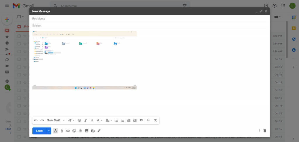 For pasting an image to a document editor or email, use any of the other keyboard shortcuts. PrtSc for the entire display, **Alt **+ **PrtSc **for the active window, and **Shift **+ **Windows key **+ **S **to select a portion of the screen.