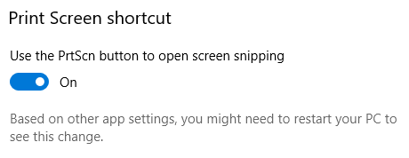 Note: Some apps like OneDrive, Dropbox, and image capturing programs like the ones mentioned below, can take over the PrintScreen key. It can be difficult to figure out which app is using the PrintScreen hotkey. Those are the most common, so check them first if you’re having trouble.