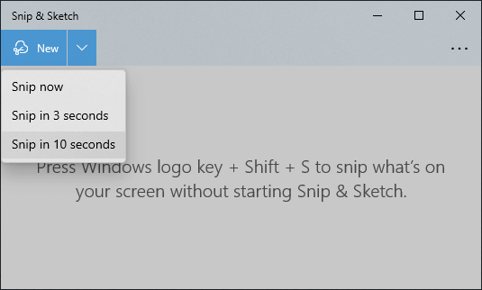 Launching the Snip & Sketch app will give you access to the delayed snip feature, which you can find in the New button’s dropdown menu. Once you select New, your screen will look grayed out, and you’ll see a small Snip & Sketch toolbar at the top of the screen. Select rectangular snip, free-form snip, window snip, or full-screen snip.