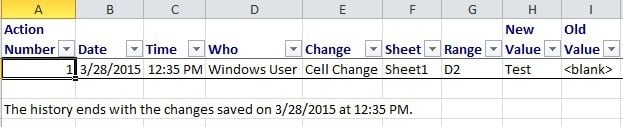 Check that and click OK. A new worksheet called History will be added that will let you view all the changes that have been made to that workbook.