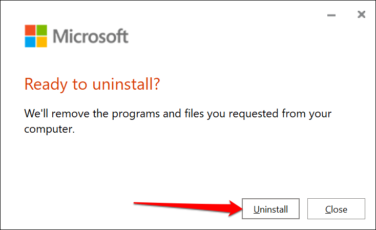 - Select **Uninstall** on the confirmation prompt and wait for Windows to remove the product from your PC.