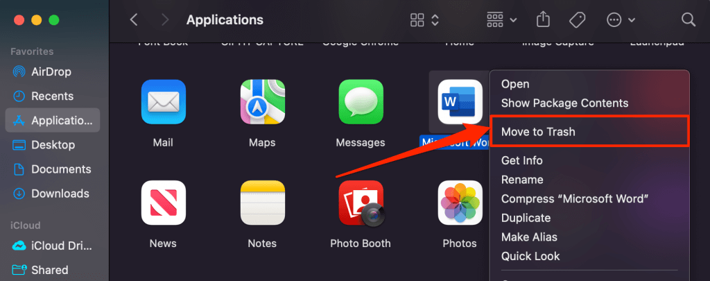 Go to Finder > Applications, right-click the Office application, and select Move to Trash.