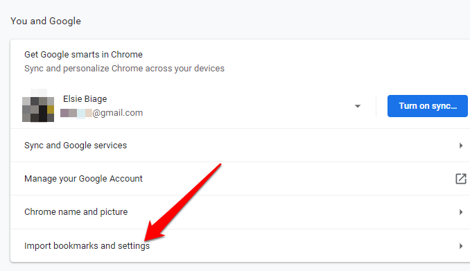 - Under the **You and Google** section, click **Import bookmarks and settings**.