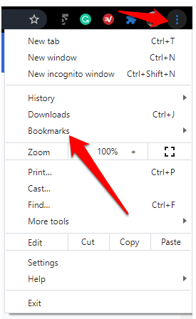 - The Bookmarks window will open in a new tab. Click the **menu **(three dots).