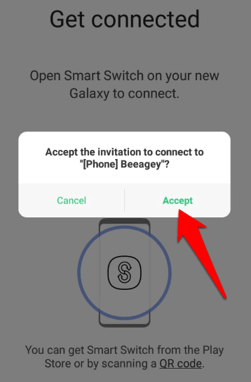 - Click **Accept **on the old phone when you see the **Accept the invitation to connect** prompt from the new phone.