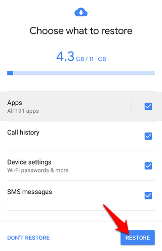 - Sign into your Google account using the same account you’re signed into on your old phone, and you’ll see a list of backup options including the old phone. Tap the correct option, and then select **Restore **to move all your data and settings from the old phone.
