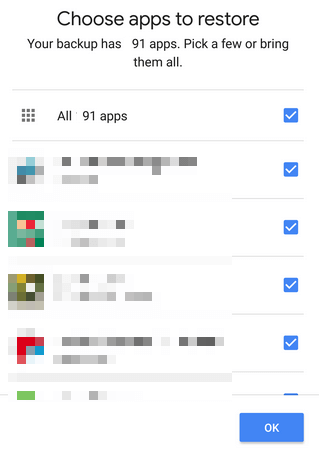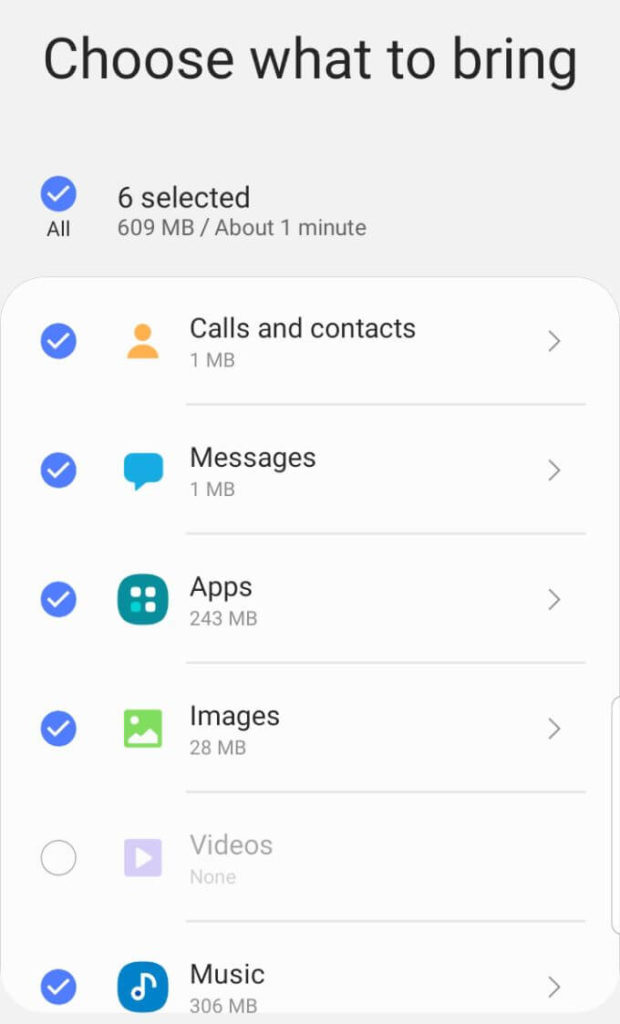 - Tap **Apps **to choose the apps you’d like to move to the new device, and let the restoration process continue. Meanwhile, you can continue setting up your new phone.