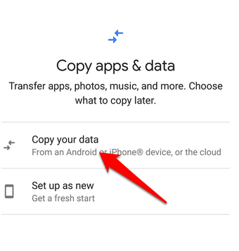 - Power on your new Android device and follow the onscreen instructions until it asks if you’d like to restore data from another device. Select your old device and tap **Copy Your Data**.