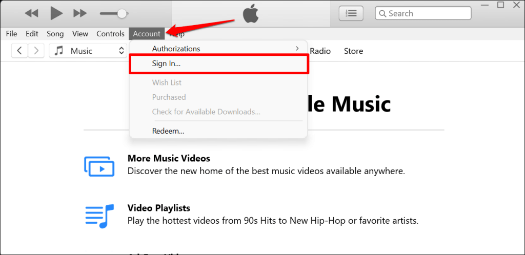 - * Select Account on the menu bar and choose Sign In.