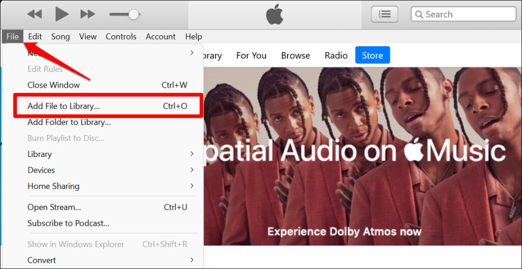 - Select **File** on the menu bar (in the top-left corner) and select **Add File to Library**. Alternatively, press **Ctrl** + **O** to open the “Add to Library” window.