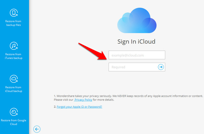 - Next, **sign in** to your iCloud account from the provided interface.