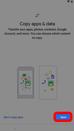 - Select **Next **to copy data from an existing device and then connect both phones using a compatible USB cable or your iPhone’s lightning cable.