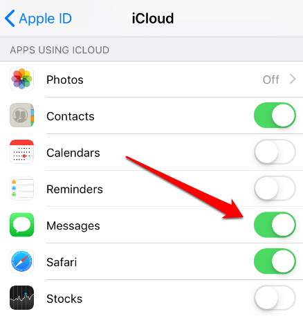 - Turn **Messages **on.