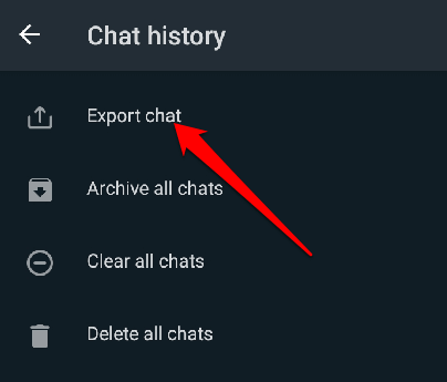 To do this, open WhatsApp, click on the menu > Settings > Chats > Chat history > Export Chat.