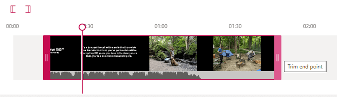 - The vertical pink line with the circle at the top is called the **playhead**. As the video plays, the playhead will show you where you are in the timeline. If you want to set a trim point** **to the playhead, use the **Set trim start point **and **Set trim end point** buttons. They will snap the trim point to wherever the playhead is on the timeline.