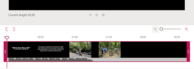 - You can zoom in and out on the timeline by using the magnifying slider. Zooming in will help you be more precise as you set your trim start and end points.