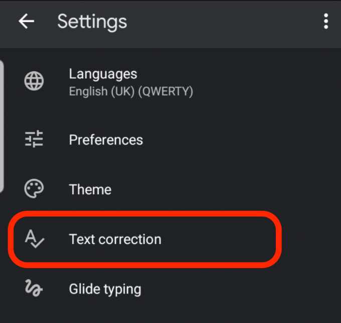 - Tap **Text Correction**.