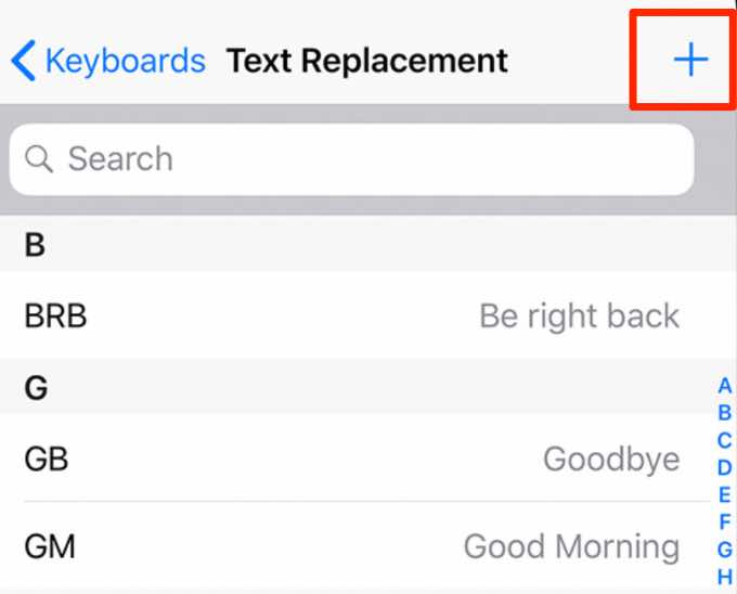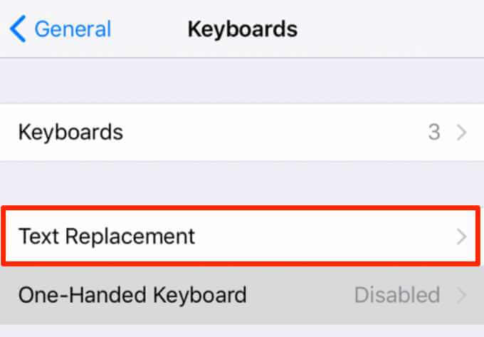 - Tap **Text Replacement**.