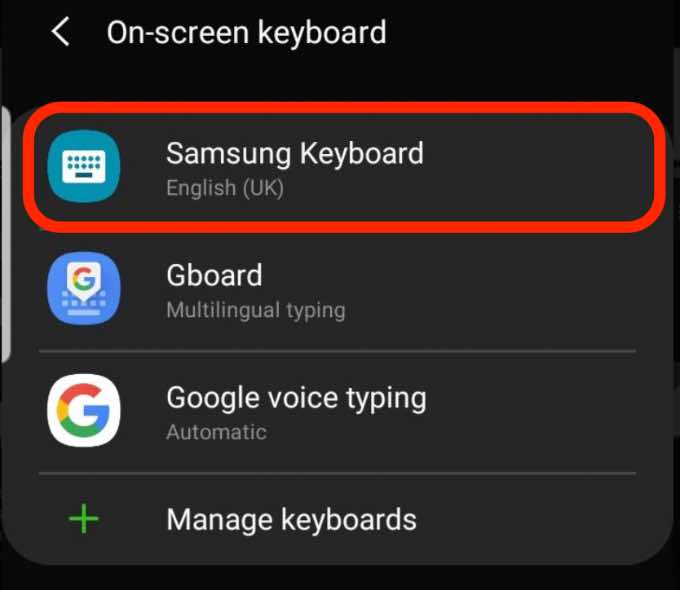 - Tap **Samsung Keyboard**.