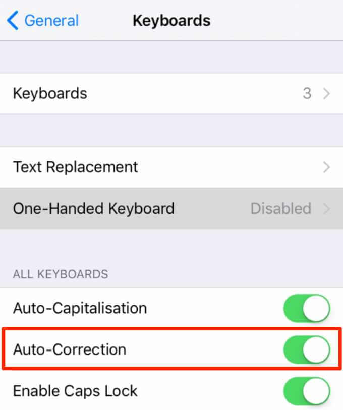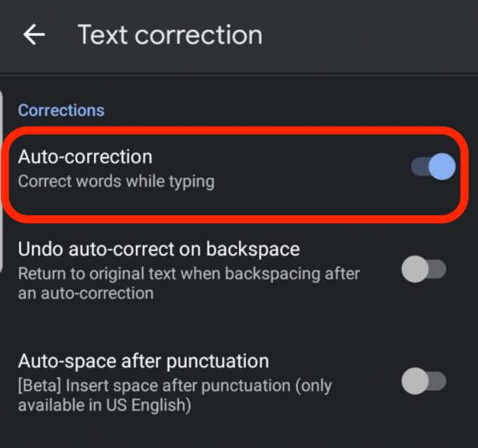 - Toggle the **Auto-Correction** switch off.