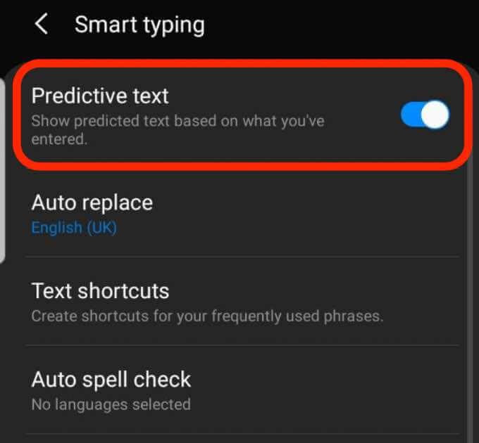 - Toggle the **Predictive Text** switch off. Your keyboard will no longer try to make suggestions or predict what you’re trying to say.