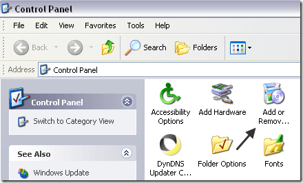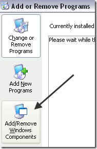 Next, click on Add/Remove Windows Components on the left hand side: