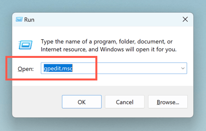 - Press Windows + R, type gpedit.msc into the Run box, and select OK.