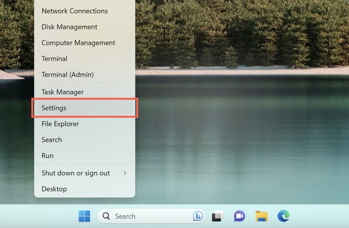 - * Right-click the Start menu button and select Settings.
