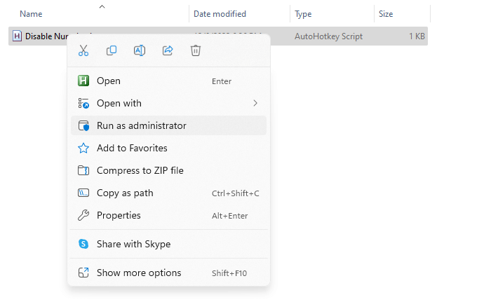 - Save the file and exit Notepad. To apply the script, double-click on it. The Numlock key will no longer work. You can close the script at any time by right-clicking on the AHK system tray icon and selecting Exit.