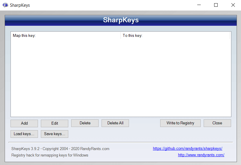 SharpKeys works by directly making changes to the Windows registry instead of intercepting keypresses like AHK. As such, it doesn’t have quite the flexibility afforded by AHK’s scripting system, but we don’t need anything fancy to remap a single key.