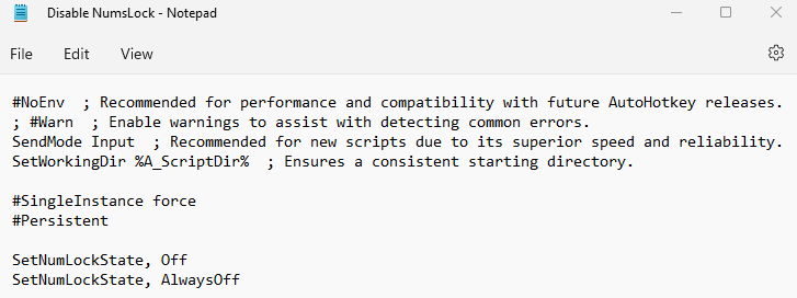 Fix 5: Keep Num Lock Constantly Disabled With AutoHotkey