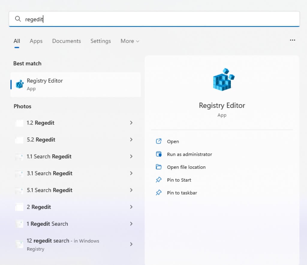 - Open the Registry Editor by searching for Regedit in the Start Menu.
