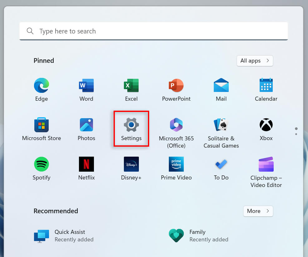 - Open the Start Menu and select Settings.