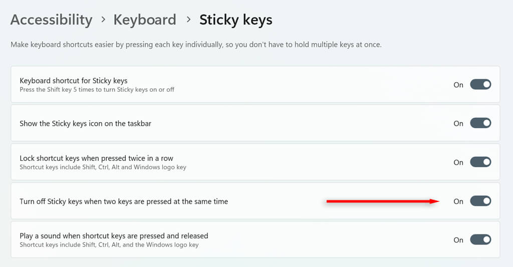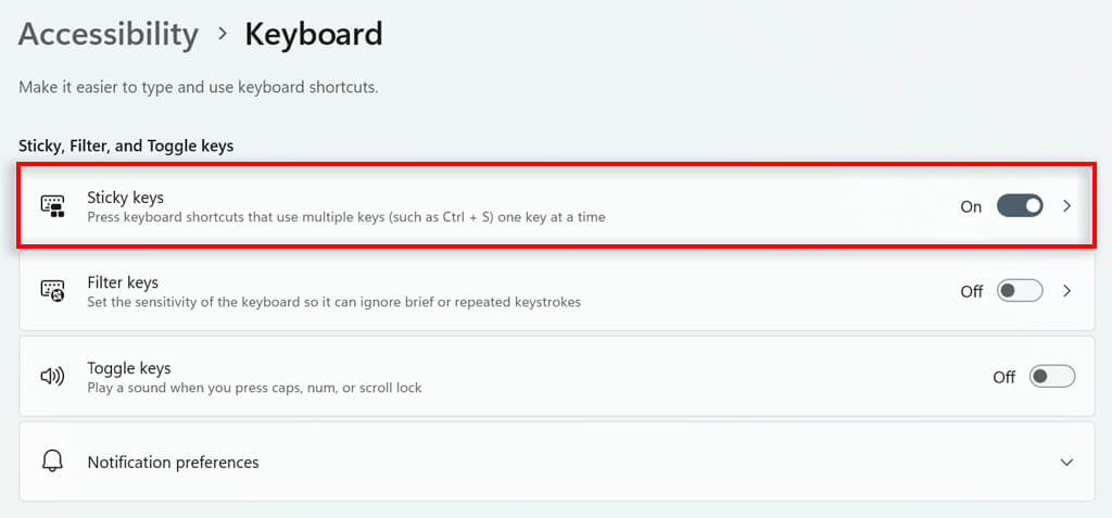 Turn Off the Sticky Keys Shortcut in Windows 11