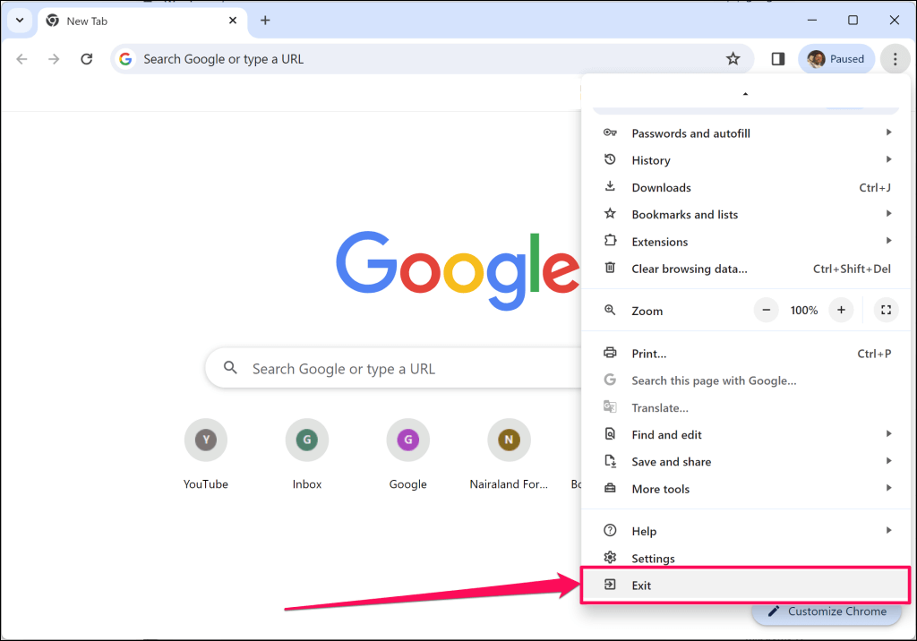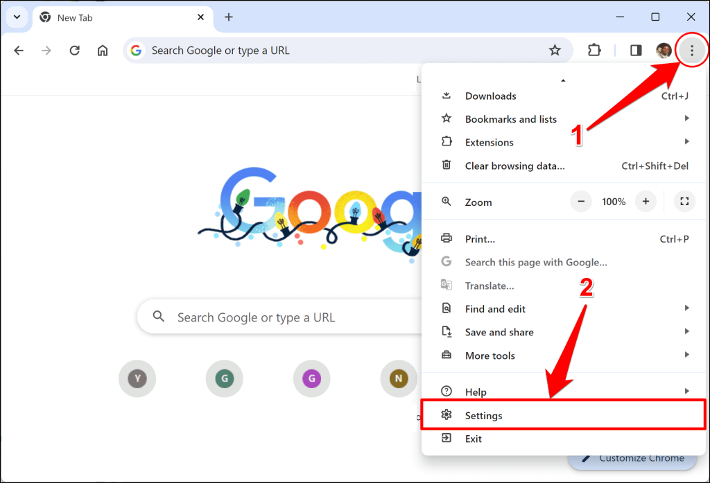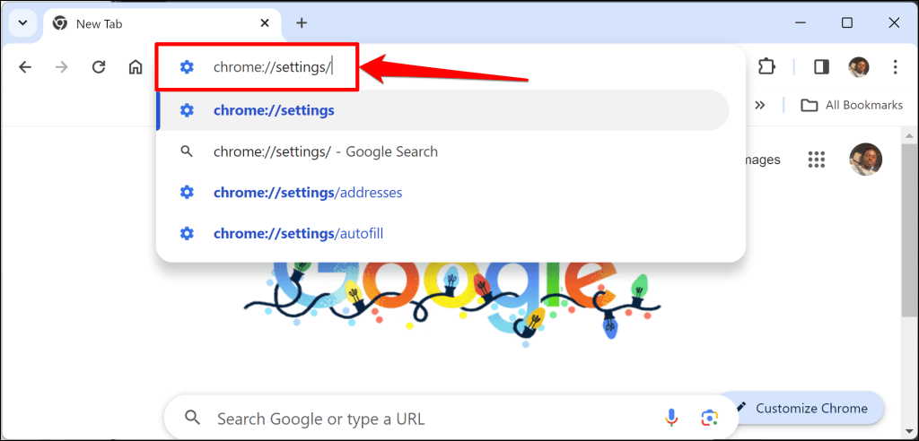 Alternatively, paste chrome://settings/ in the address bar and press Enter.