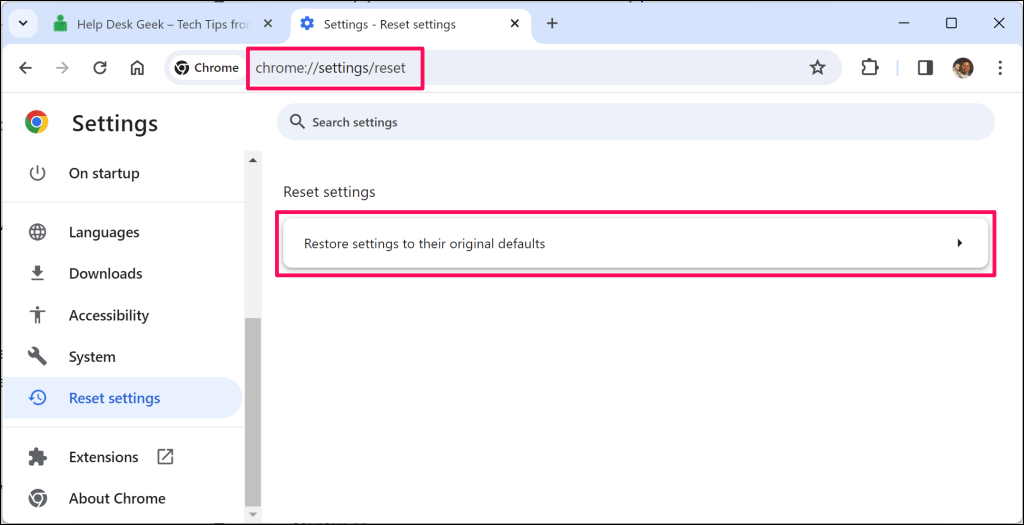 Reset Chrome’s settings to factory default if the browser doesn’t stop requesting biometric authentication for password autofill. Performing a factory reset deletes cookies, temporary site data, and Chrome shortcuts. The operation also deactivates all extensions installed on the browser.